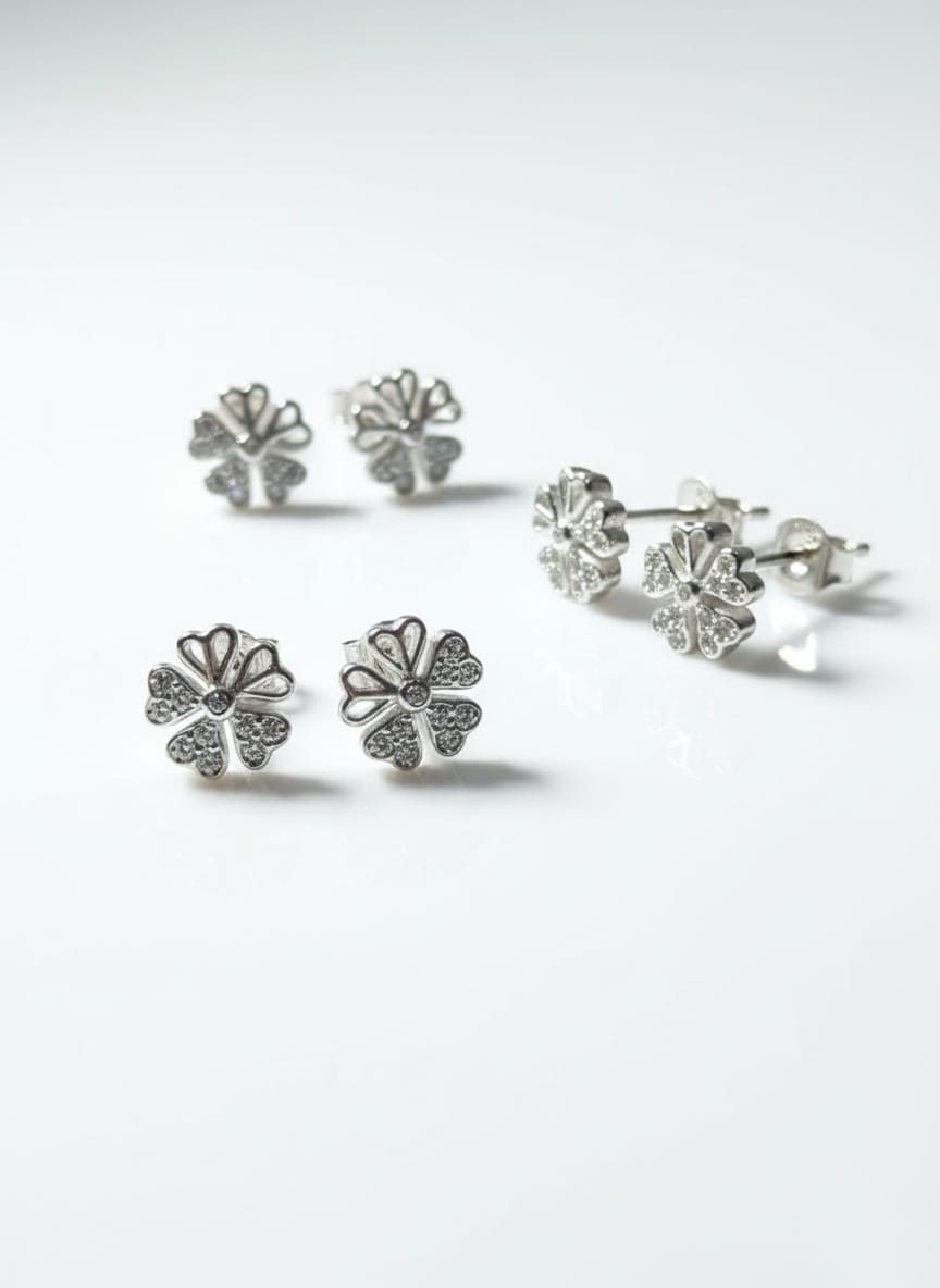 Shop 925 sterling silver flower-shaped stud earrings for women. Elegant silver ladies tops, lightweight, perfect for daily wear & gifting.
