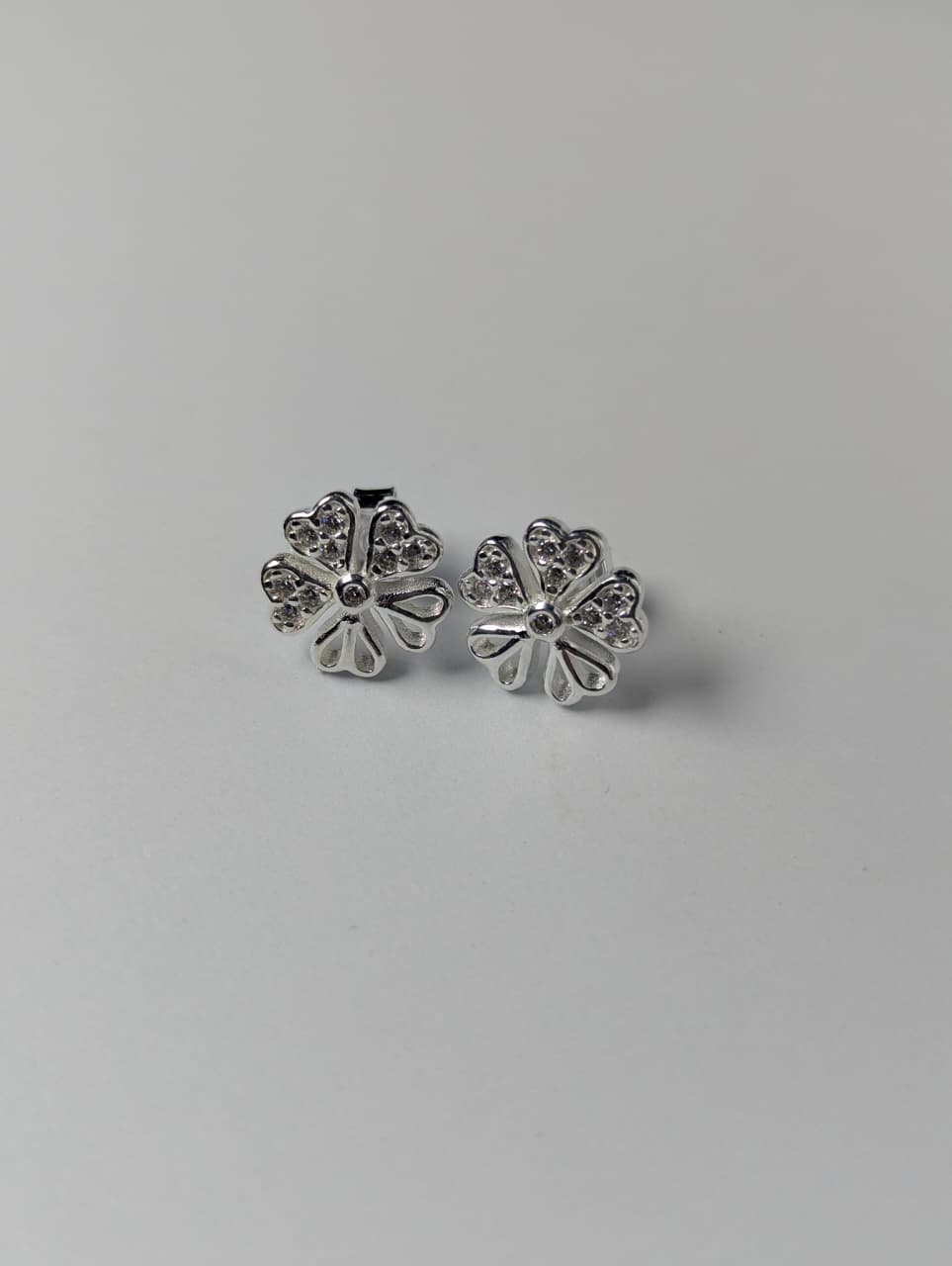 Brighten your look with these silver flower-shaped stud earrings, designed for women who love delicate and charming jewelry. Made from premium 925 sterling silver, these silver ladies tops earrings feature a beautifully detailed flower design with sparkling accents, adding elegance and sophistication to any outfit.