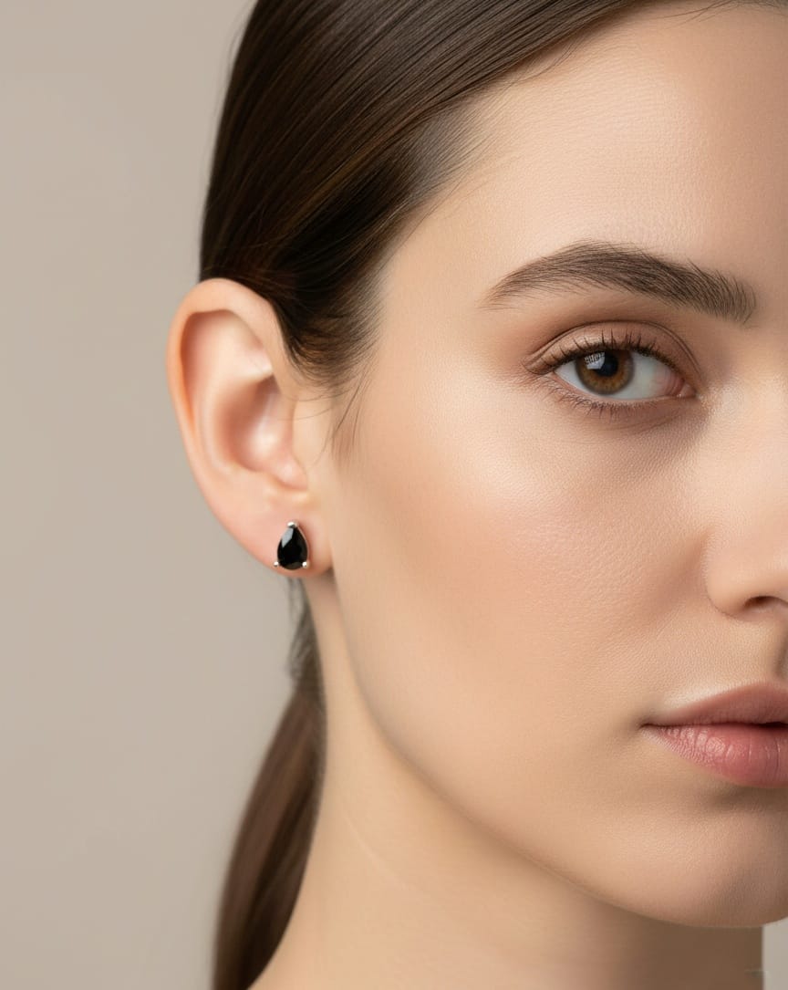 Elevate your style with these teardrop black gemstone silver stud earrings, designed for women who love elegant and timeless jewelry. Crafted from high-quality 925 sterling silver, these silver ladies tops earrings feature a stunning black teardrop gemstone that adds a sophisticated and chic touch to any outfit.