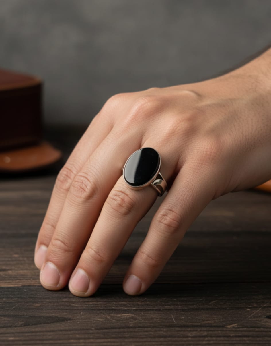 Define your modern style with the striking Apex Architect Silver Ring. This contemporary Men’s Silver Ring is built around a sleek, polished Rectangular Black Gemstone with clean, sharp edges—a symbol of unrivaled precision and authority.